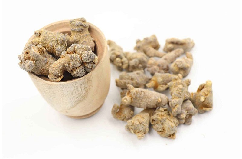 Thân rễ dẹt, nhỏ, mùi thơm, vị cay.